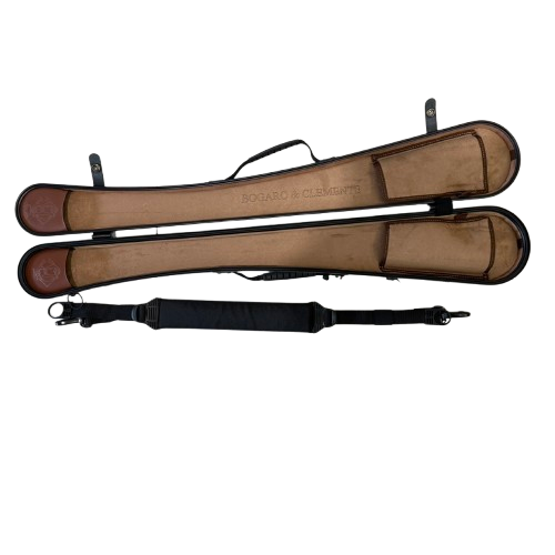 The Federica case is designed to transport and protect one or two German-style double bass bows, offering superior strength, functionality, and protection. Made of high-modulus pre-impregnated carbon fiber with localized and structural reinforcements, it ensures an exceptional balance of lightness and durability.