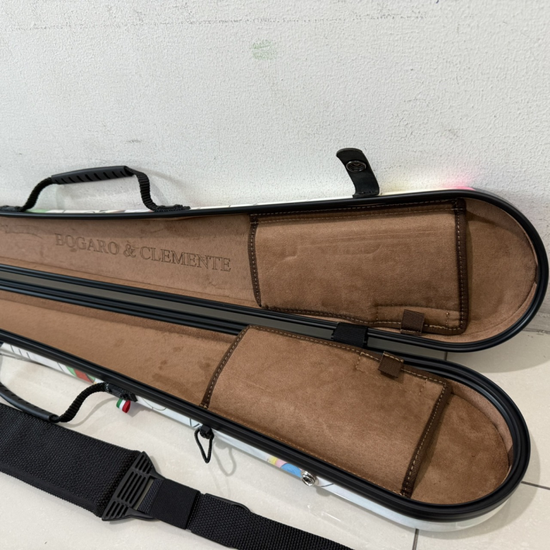 The Federica case is designed to transport and protect one or two German-style double bass bows, offering superior strength, functionality, and protection. Made of high-modulus pre-impregnated carbon fiber with localized and structural reinforcements, it ensures an exceptional balance of lightness and durability.