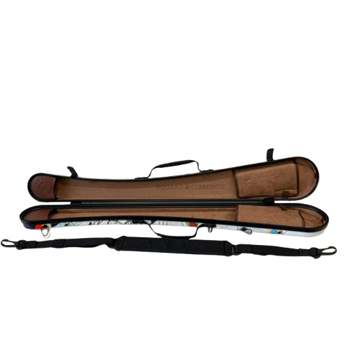 The Federica case is designed to transport and protect one or two German-style double bass bows, offering superior strength, functionality, and protection. Made of high-modulus pre-impregnated carbon fiber with localized and structural reinforcements, it ensures an exceptional balance of lightness and durability.
