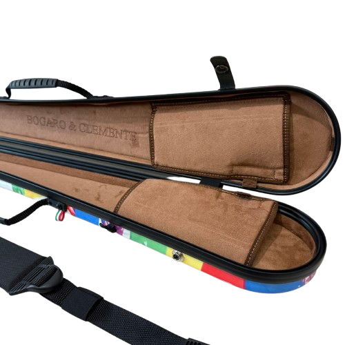 The Federica case is designed to transport and protect one or two German-style double bass bows, offering superior strength, functionality, and protection. Made of high-modulus pre-impregnated carbon fiber with localized and structural reinforcements, it ensures an exceptional balance of lightness and durability.