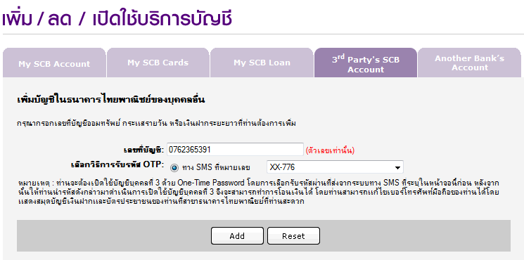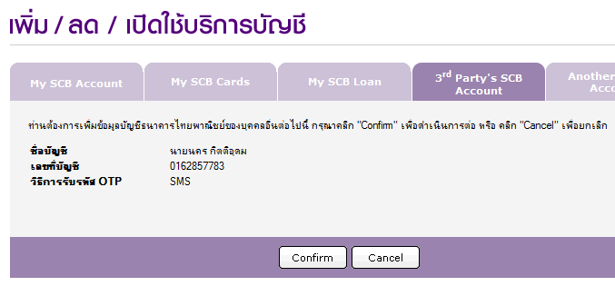 ต้องติดต่อสอบถามทาง 02-777 7777 แล้วทำการกดปุ่ม Add - หน้าเวบจะเปลี่ยนมาเพื่อให้เราตรวจสอบข้อมูลอีกครั้งเพื่อยืนยัน