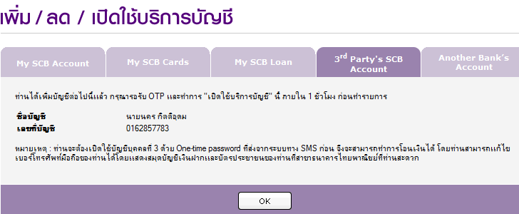 72 ชม การเพิ่มบัญชีจึงจะสมบูรณ์ ก็ให้กด OK เพื่อเข้าสู่หน้าเวบปกติก่อน