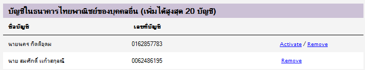 Activate เพื่อยืนยันการใช้งาน เท่านี้ก็เป็นการเสร็จสิ้นการเพิ่มบัญชีธนาคารบุคคลอื่น