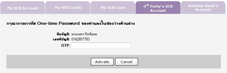 Activate ให้ใช้งาน ก็ให้ทำการกดลิ้ง Activate - ให้ท่านกรอกรหัส OTP ตามที่ท่านได้ตามลงในช่อง แล้วกด