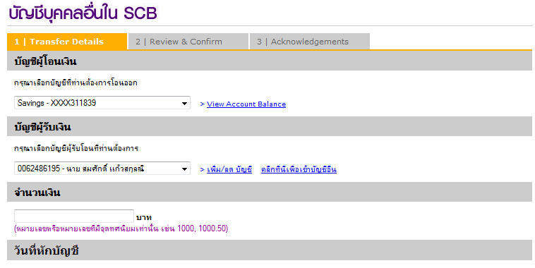 ท่านสามารถกระทำขั้นตอนที่ 3 ได้ทันที โดยมีขั้นตอน/วิธีการ ดังนี้ ตรวจสอบข้อมูล ธนาคารก็จะทำการโอนตามที่เราต้องการ |